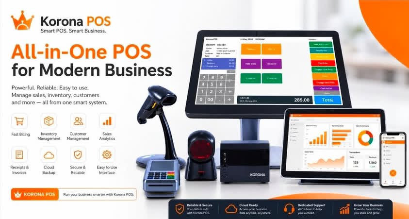 KORONA POS is a flexible, cloud-based POS system designed for retail, QSR, and ticketing businesses—built to simplify inventory, sales, and multi-location operations with powerful reporting and customization.